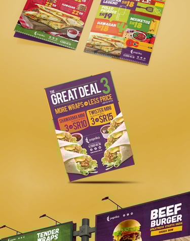 These are Print Ads I did for different clients and businesses, from Fliers, Brochures, Posters, Menu and more.